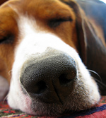 RU: Finnish Hound dog in the snow